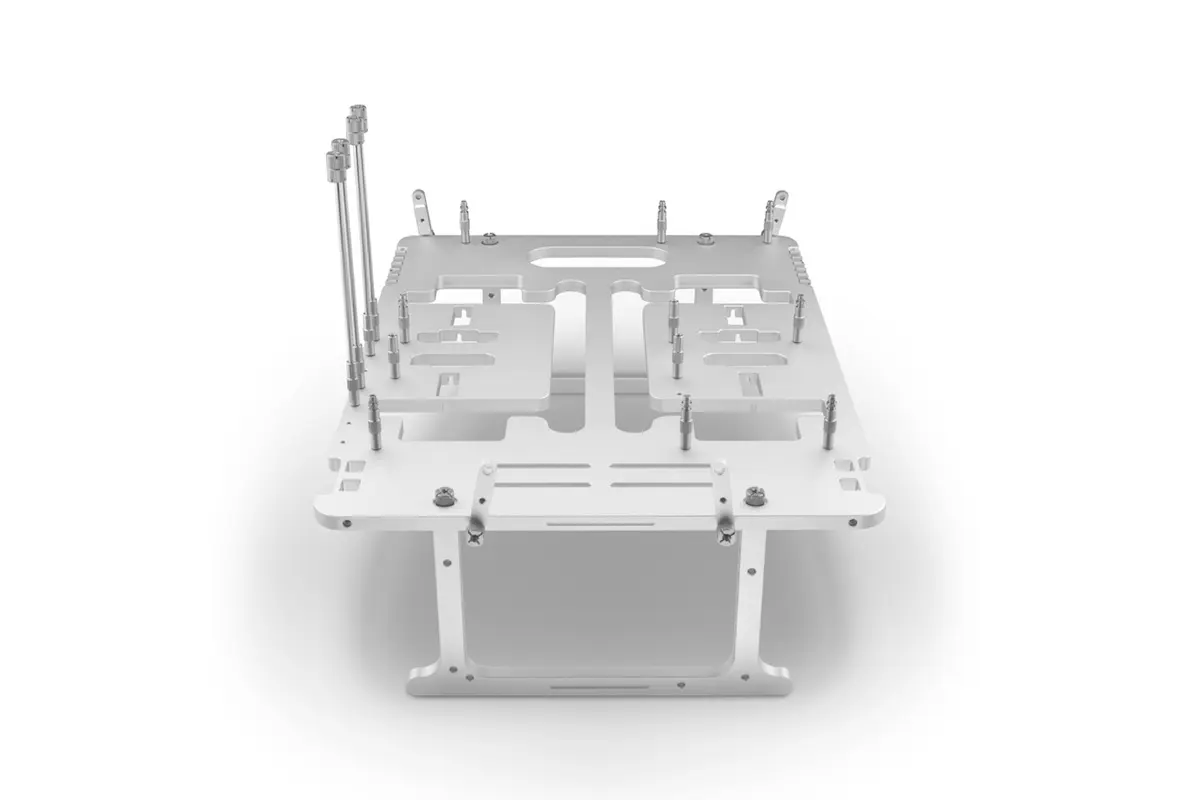 Main body integrates the legs, mounting brackets, standoffs and thumbscrews – everything you need to quickly set up an open rig.