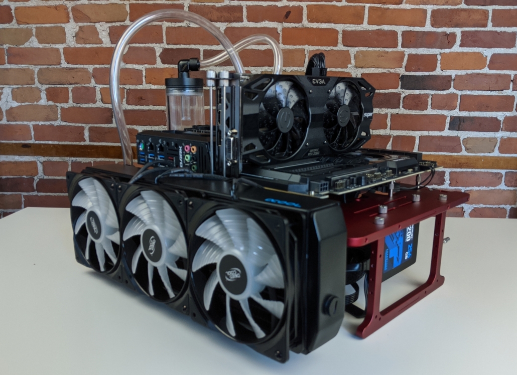 The Open Benchtable is designed to handle any sort of hardware, it allows the users to build computers with a wide variety of component choices. Watercooling kits are no exception. Indeed, the OBT can support large radiator sizes, from 120mm to the giant 420mm ones. The only limit is gravity (almost)!