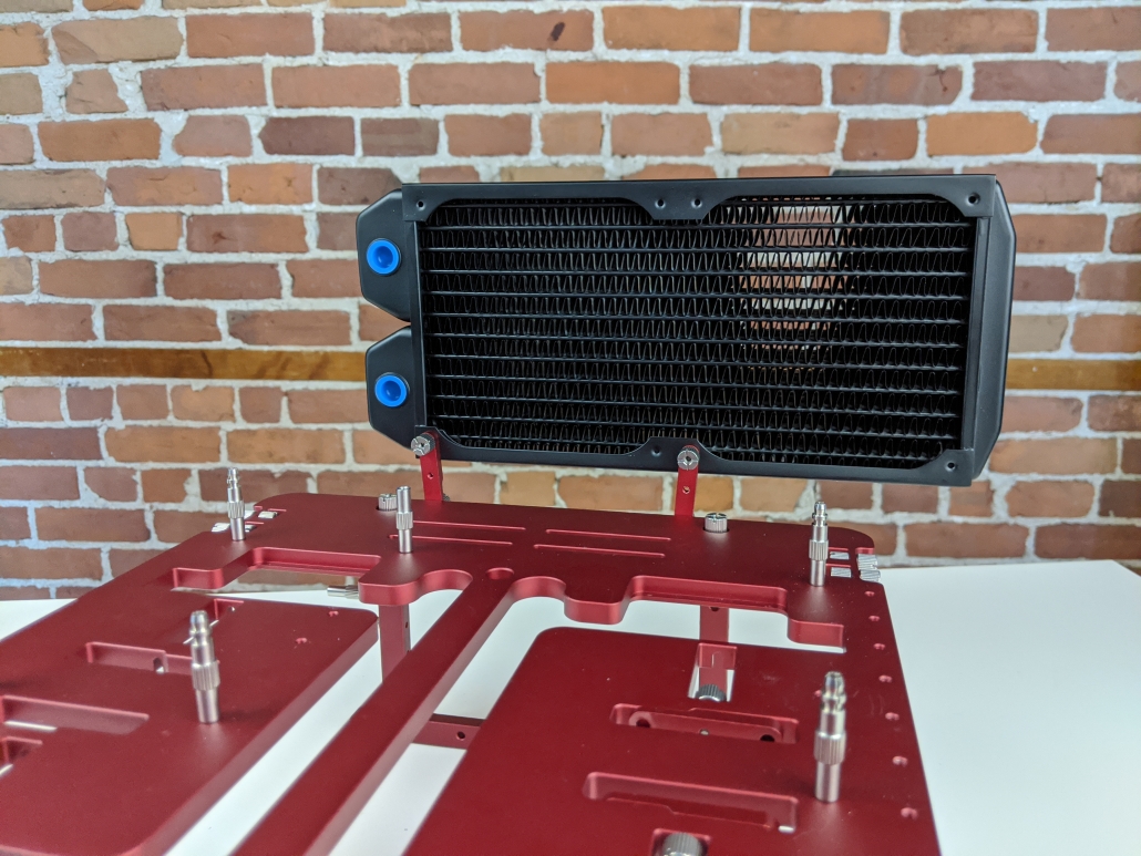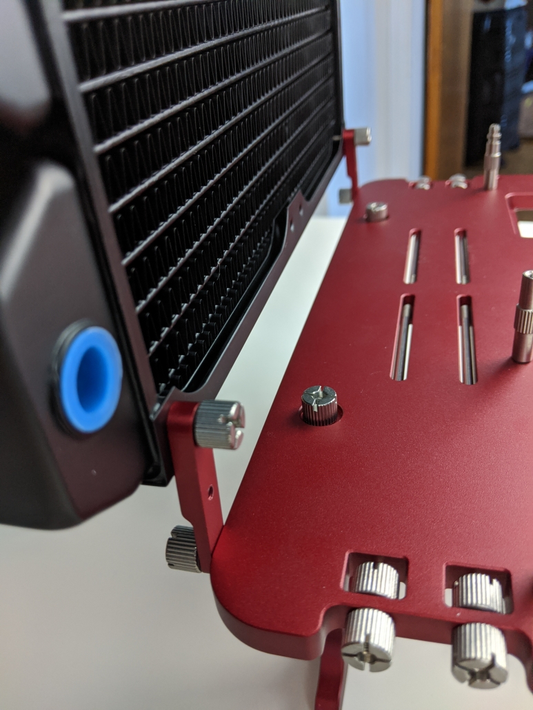 Tips from the team: Use the widest mounting point on the Open Benchtable to support large radiators.