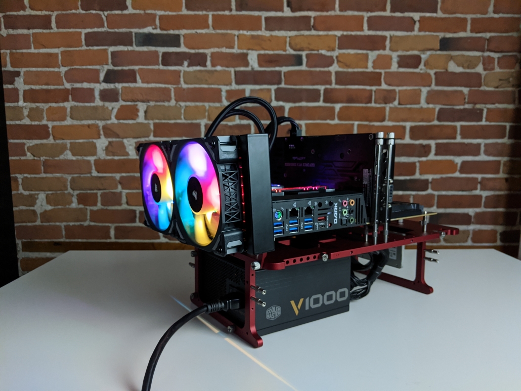 Depending on your motherboard format and GPU size, consider mounting the radiators on the right of the OBT. Adjust the brackets to fit your radiator and you’re good to go!