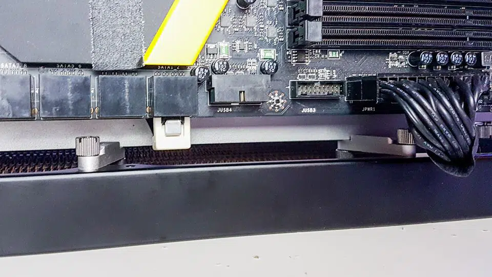 We wouldn’t really recommend this setup because it can easily obstruct the PSU’s plug. This is a good location for a tiny radiators, pump or VRM Cooling bracket.