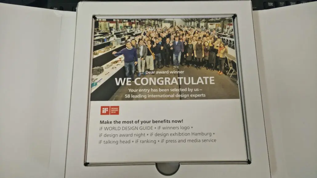 A couple of months ago we posted an official news piece declaring that the BC1 Open Benchtable had received the award for Computer Product Design 2017 from the iF DESIGN group. It was a great moment, to have official recognition from a prestigious group such as the iF Design Forum, a group made up of 58 of the world’s leading international design experts. Today we follow up with a few pictures of the award, which has now arrived at our office in Taipei – in actual physical form.