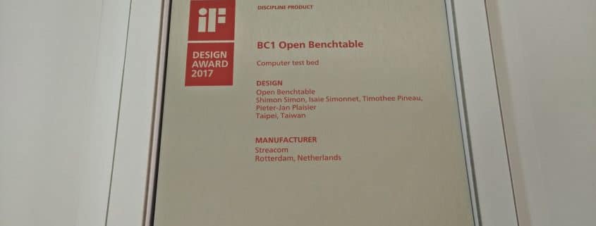 A couple of months ago we posted an official news piece declaring that the BC1 Open Benchtable had received the award for Computer Product Design 2017 from the iF DESIGN group. It was a great moment, to have official recognition from a prestigious group such as the iF Design Forum, a group made up of 58 of the world’s leading international design experts. Today we follow up with a few pictures of the award, which has now arrived at our office in Taipei – in actual physical form.