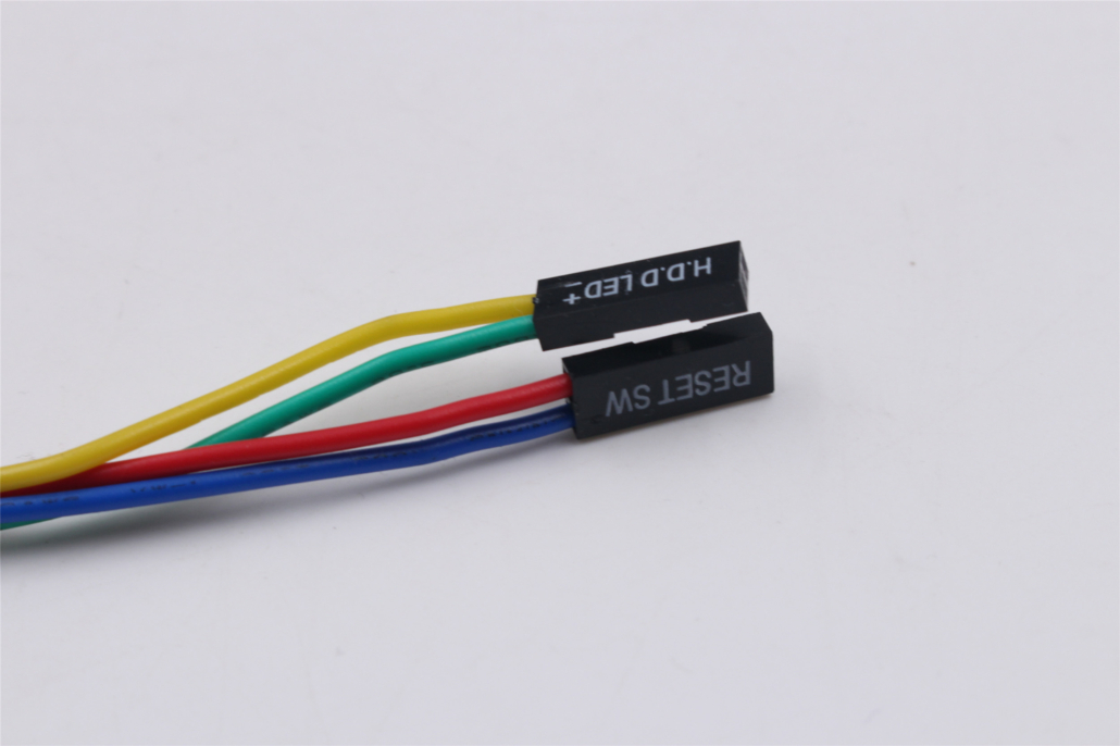 - Reset button connections: reset switch and HDD LED
