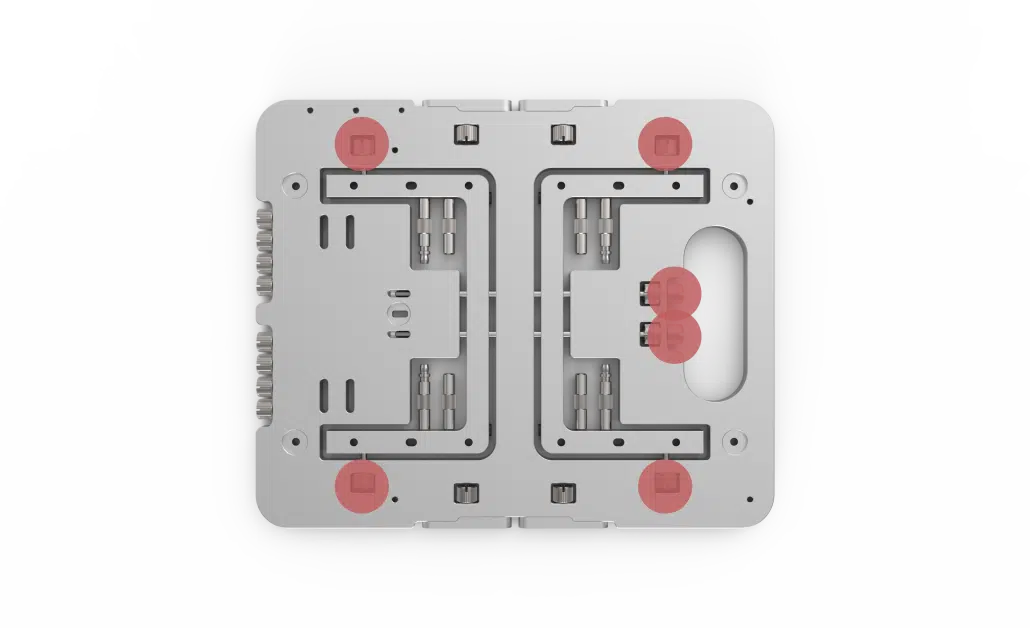 If you are using an OBT Mini, two PCI-E standoffs are included with your unit. To get them out, you need to unlock the feet. Loosen the 6 screws highlighted in the picture below. Then get the PCI-E standoffs by sliding them out of the feet.