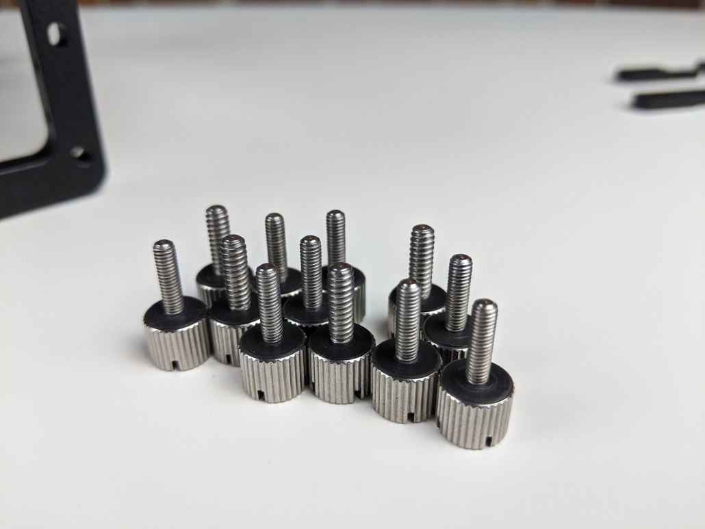 All of the screws are located at the bottom of the OBT Mini. The 6#32 screws can be found on the left side, while spare M3 screws are on the right side.