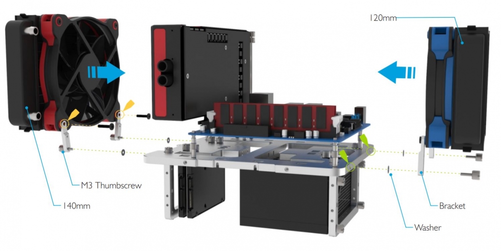 If you need to add extra coolers or accessories to your set-up, use the included brackets. These are located at the center of the benchtable. Screw them at the top of your OBT and then mount your accessory or cooler onto it. The brackets can also be used to accommodate all-in-one and custom watercooling. More advanced information is available on our How-To section Â