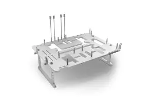 The Open Benchtable has been optimized for true portability, a fact that makes it stand out from other benchtables currently available on the market. It’s only 8mm thick, weighs a just 1.82kg, and is designed for traveling overclockers, enthusiasts and technical professionals. It’s suited to basically anyone who needs to put together a full, open PC while on the road. It’s ingeniously integrated design means that all the components needed to quickly set up a benching station are actually integrated to the main body. These include standoffs, screws and brackets. It really is the next level of convenience and portability.